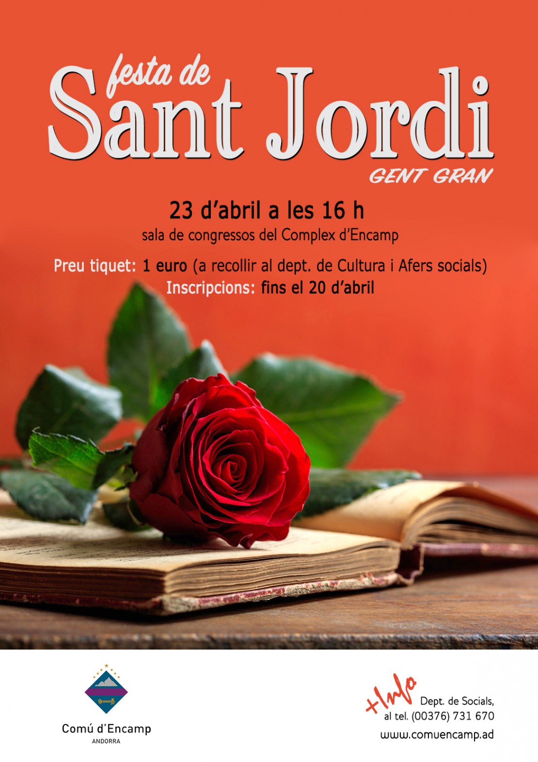 El pròxim dijous 23 d'abril la gent gran de la parròquia d'Encamp celebraran la festa de Sant Jordi a la sala de congressos del Complex Esportiu i Sociocultural d’Encamp.