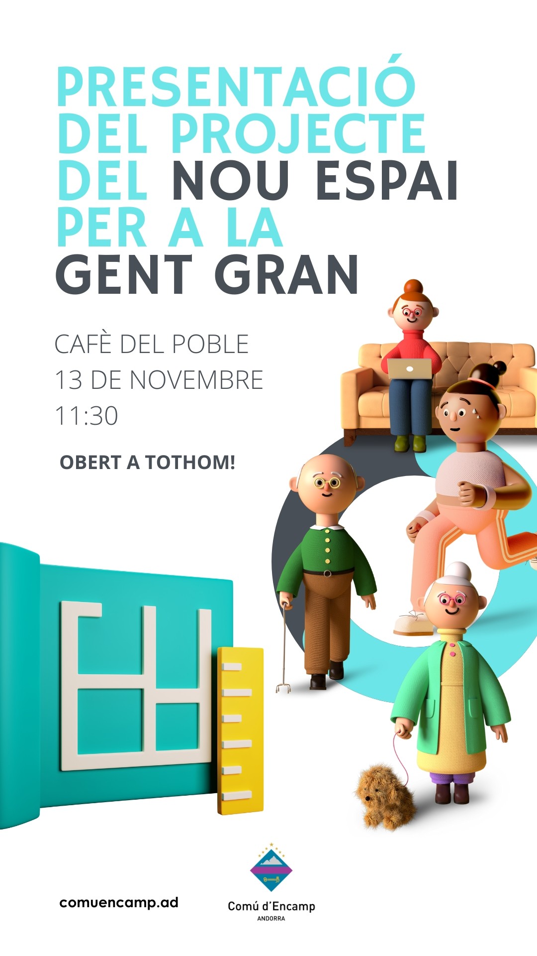 El Comú d’Encamp crearà un nou espai per a la gent gran a Encamp. El projecte es presentarà el 13 de novembre en un acte obert a tothom al Cafè del Poble, a les 11.30 h.