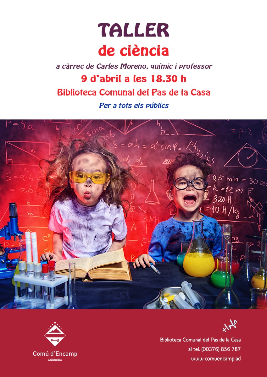 La Biblioteca Comunal del Pas de la Casa organitza, pel pròxim dimarts 9 d'abril, a les 18.30 h, un taller de ciència per a grans i petits que anirà a càrrec de Carles Moreno, professor i químic.