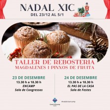 Gaudeix de l'arribada del Nadal de la forma més dolça possible! Amb un taller de rebosteria on podràs fer pinxos de fruita i magdalenes decorades amb motius nadalencs.