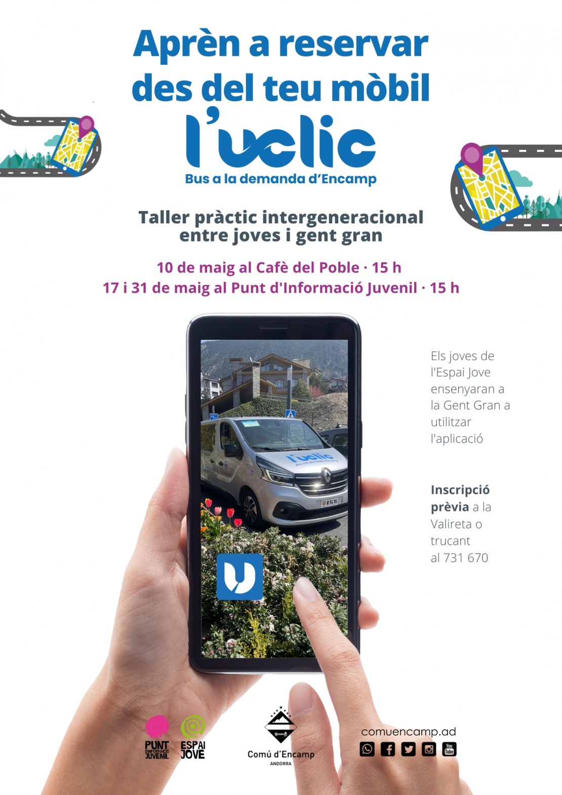 El Comú d’Encamp ofereix un taller pràctic intergeneracional entre joves i gent gran per donar a conèixer totes les funcionalitats de l’aplicació mòbil que disposa l'Uclic, el servei de transport a la demanda d’Encamp.