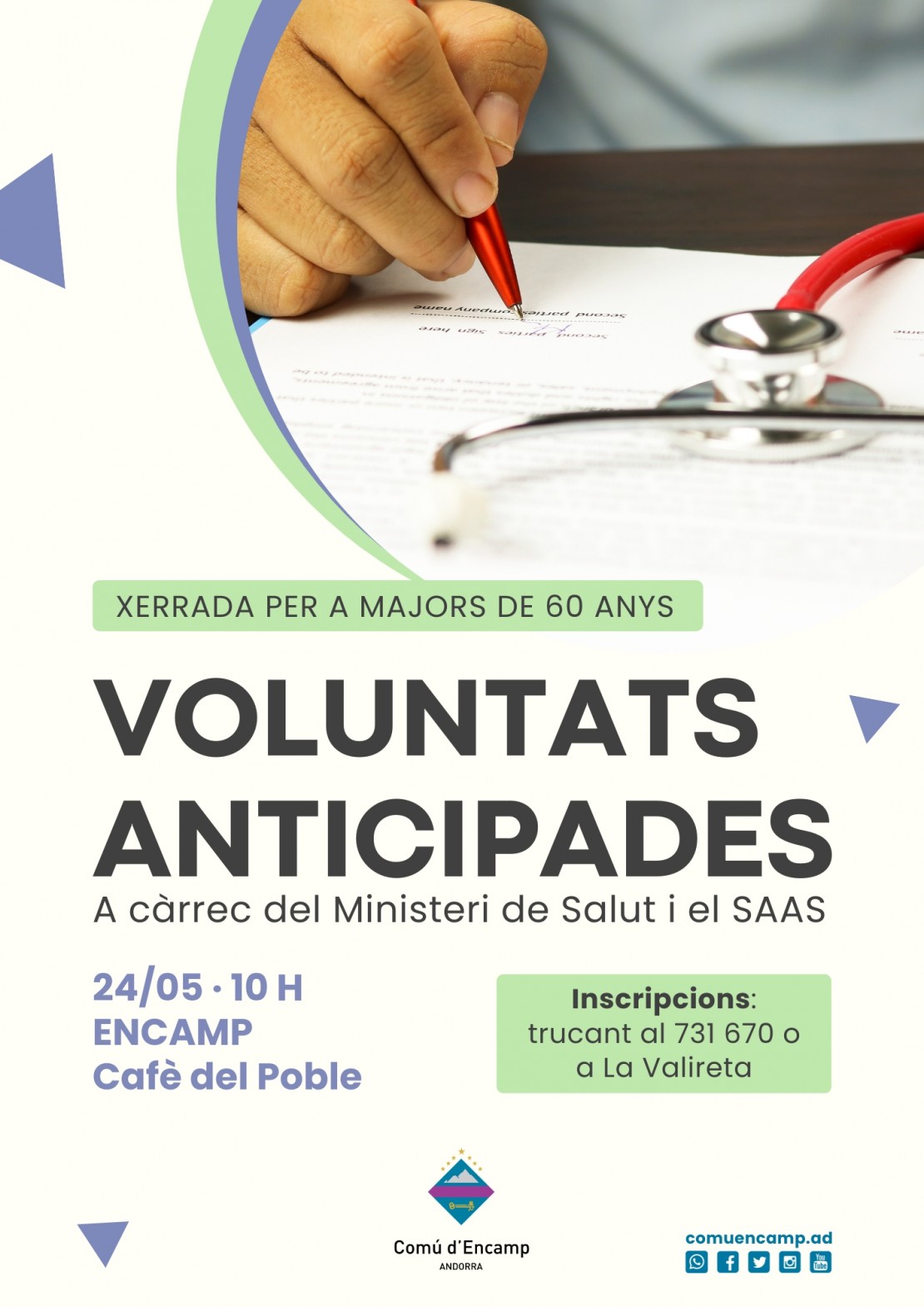 El Cafè del Poble acull una xerrada informativa per a la gent gran sobre les voluntats anticipades, en què es donarà a conèixer el Registre Nacional de Voluntats Anticipades (RNVA) i la Declaració de Voluntats Anticipades (DVA).