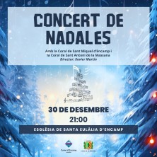 L'església de Santa Eulàlia d'Encamp acollirà un concert a càrrec de la Coral de Sant Miquel d'Encamp i de la Coral de Sant Antoni de la Massana. Ambdós grups s'uniran per oferir un repertori de cançons nadalenques per a tots els públics.