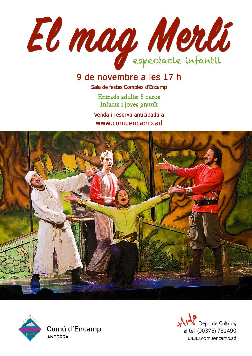 La sala de festes del Complex Esportiu i Sociocultural d'Encamp serà l'escenari del musical infantil "El mag Merlí" de la companyia Veus-Veus, una adaptació musical del gran clàssic amb personatges fantàstics i cançons en directe.
