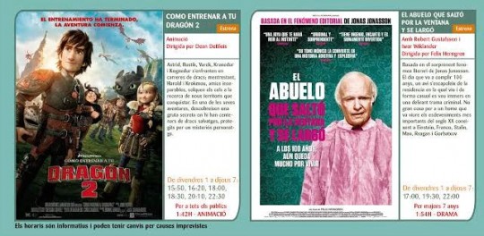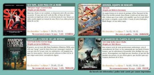 Consulteu a la programació els horaris de projecció de cada pel·li.