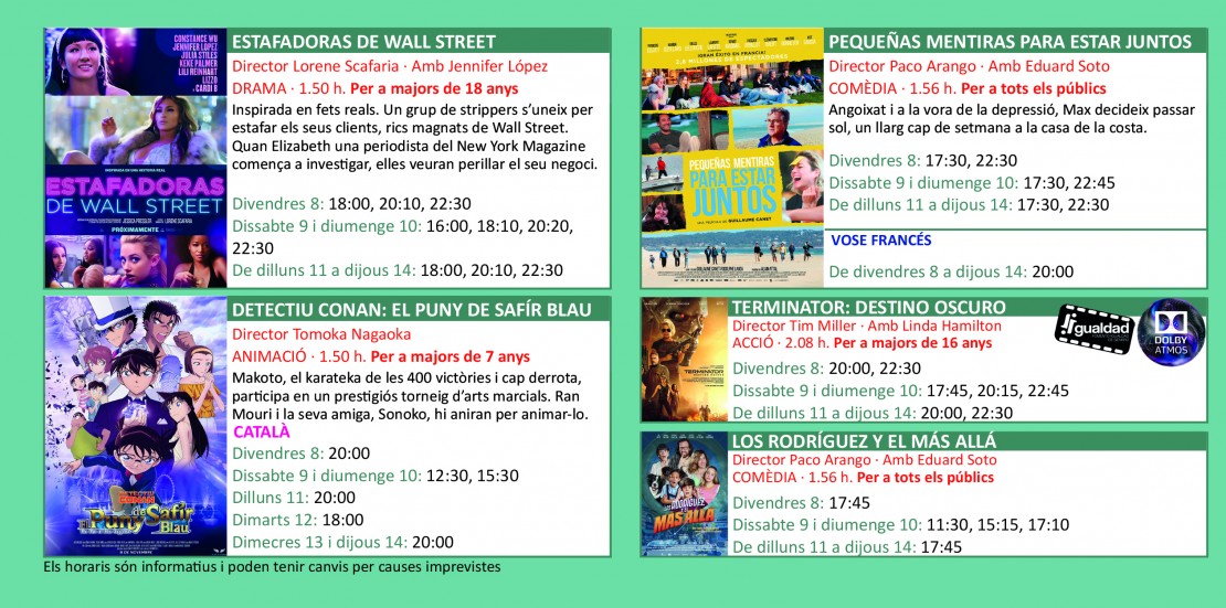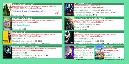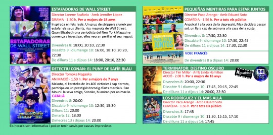 Fes un clic damunt de les imatges per ampliar-les i consultar la cartellera.