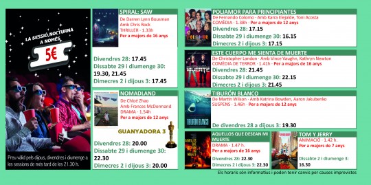Fes un clic damunt de les imatges per ampliar-les i consultar la cartellera.