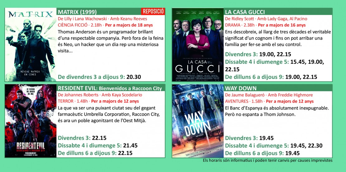 Programació dels Cinemes Illa Carlemany