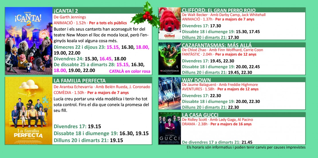 Del divendres 17 de desembre del 2021 fins al dimarts 28 de desembre del 2021