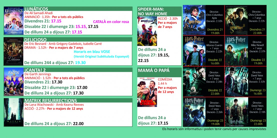 Programació dels Cinemes Illa Carlemany