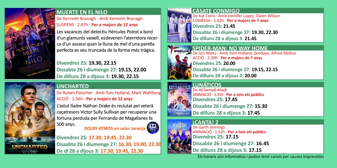 Programació dels Cinemes Illa Carlemany