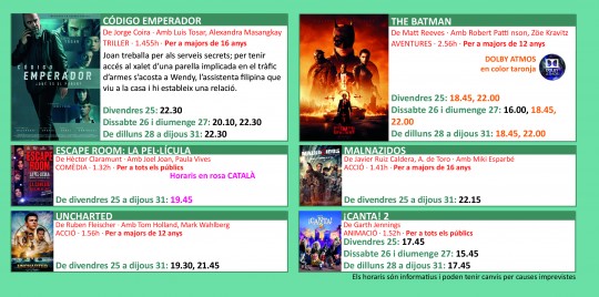 Del divendres 25 de març del 2022 fins al dijous 31 de març del 2022
