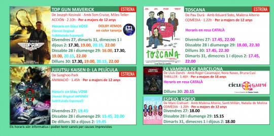 Programació dels Cinemes Illa Carlemany