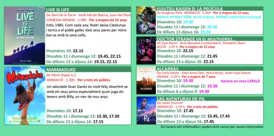 Programació dels Cinemes Illa Carlemany