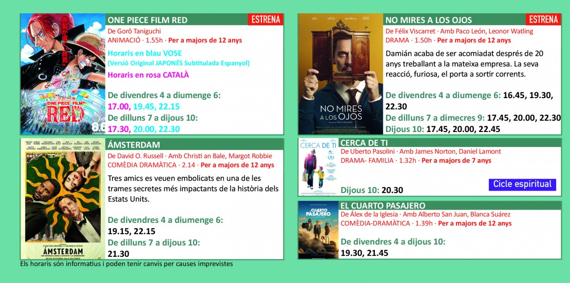 Fes un clic damunt de les imatges per ampliar-les i consultar la cartellera.