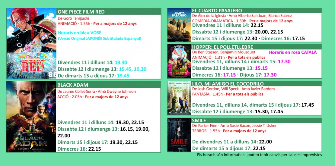 Fes un clic damunt de les imatges per ampliar-les i consultar la cartellera.