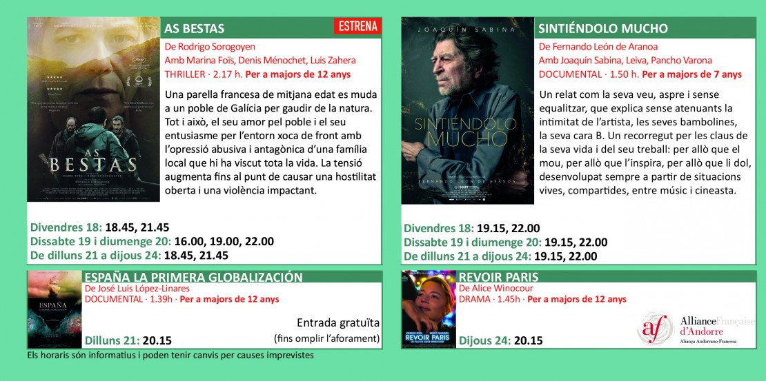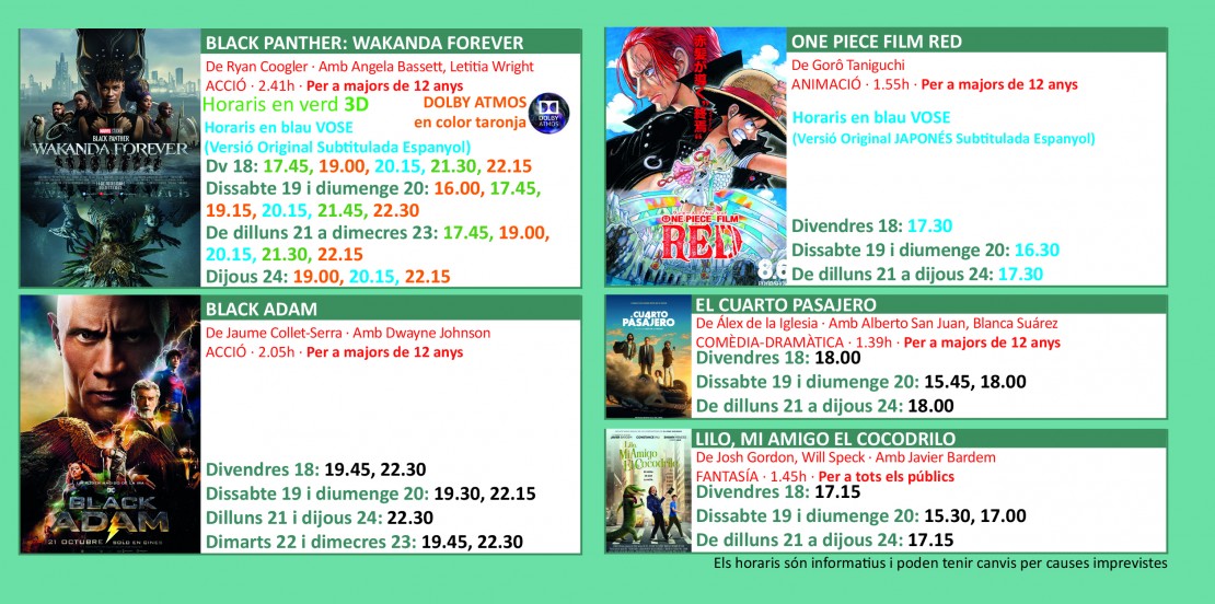 Fes un clic damunt de les imatges per ampliar-les i consultar la cartellera.