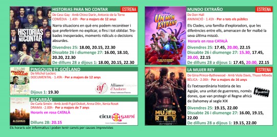 Fes un clic damunt de les imatges per ampliar-les i consultar la cartellera.