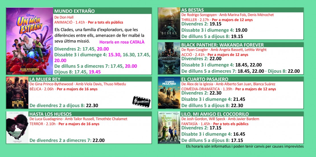 Programació dels Cinemes Illa Carlemany