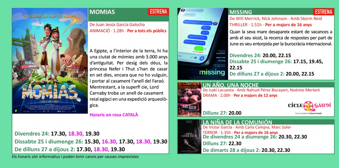 Programació dels Cinemes Illa Carlemany