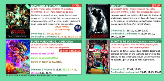 Programació dels Cinemes Illa Carlemany