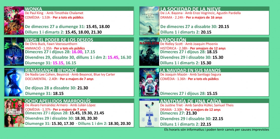 Programació dels Cinemes Illa Carlemany