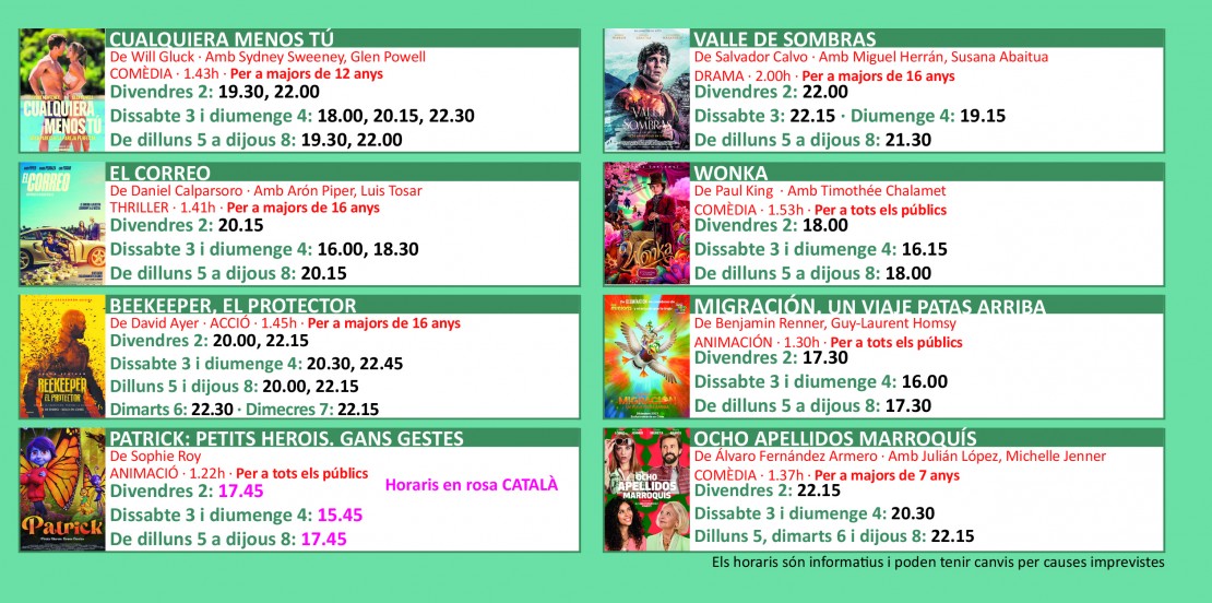 Programació dels Cinemes Illa Carlemany