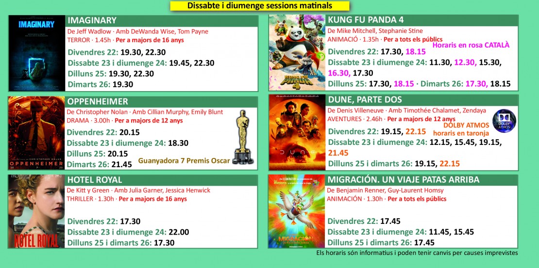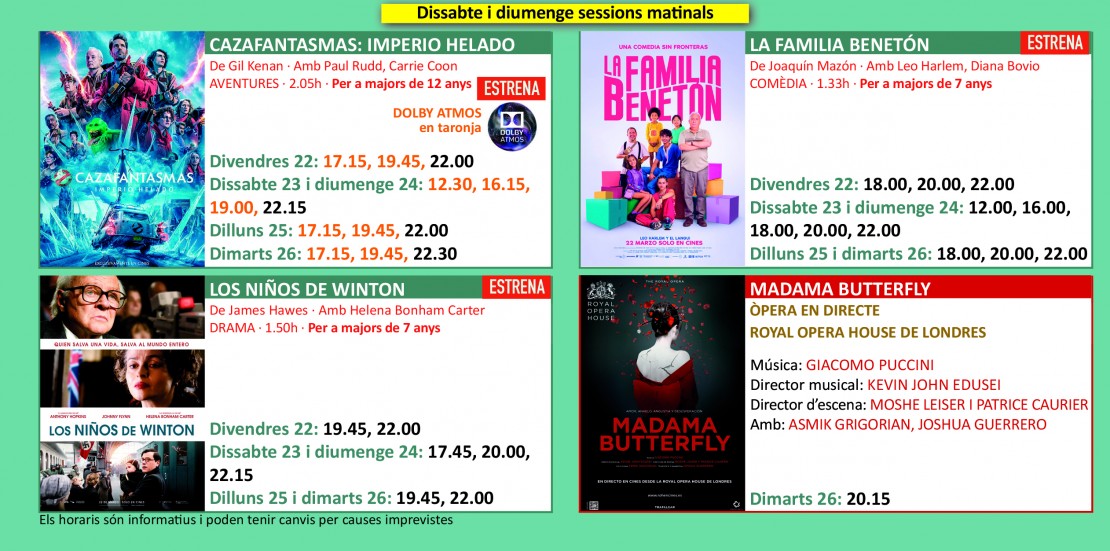 Programació dels Cinemes Illa Carlemany