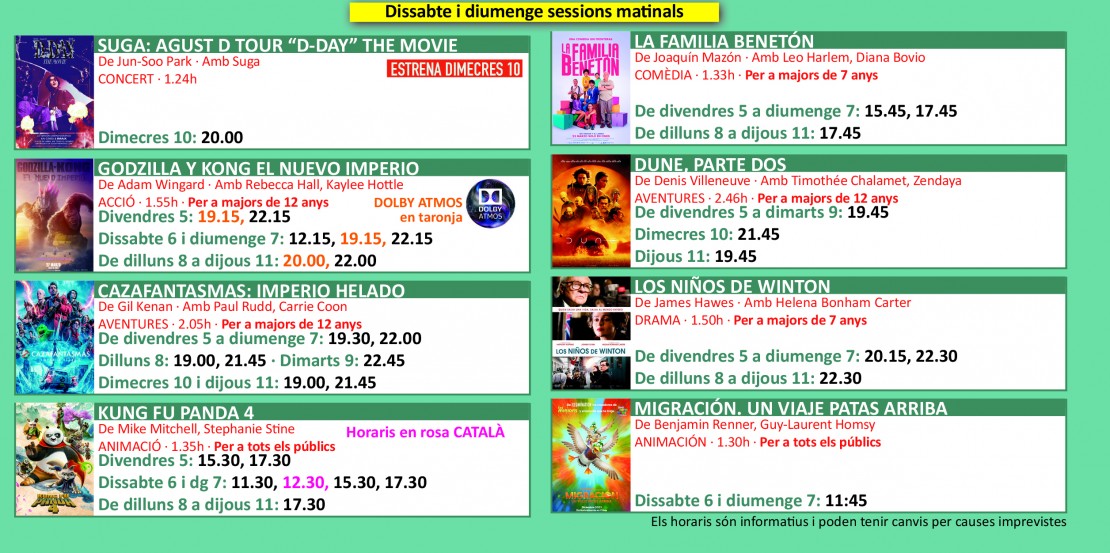 Programació dels Cinemes Illa Carlemany