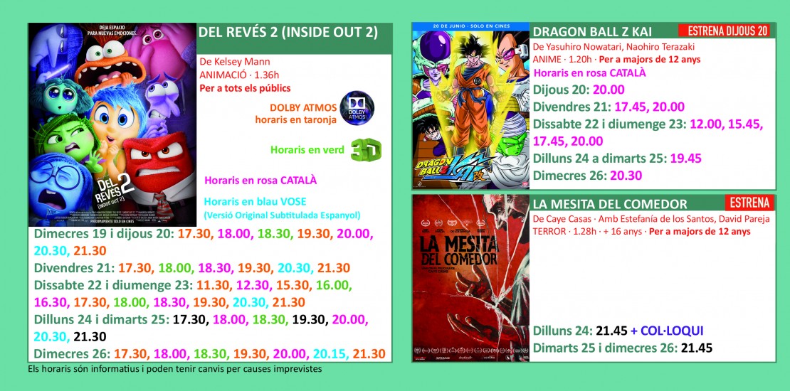 Programació dels Cinemes Illa Carlemany