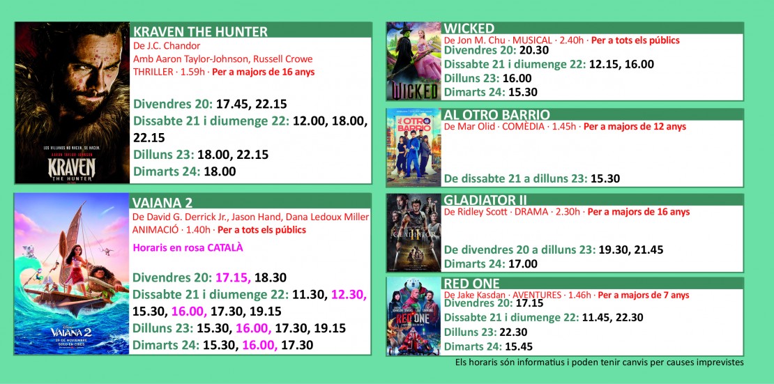 Programació dels Cinemes Illa Carlemany