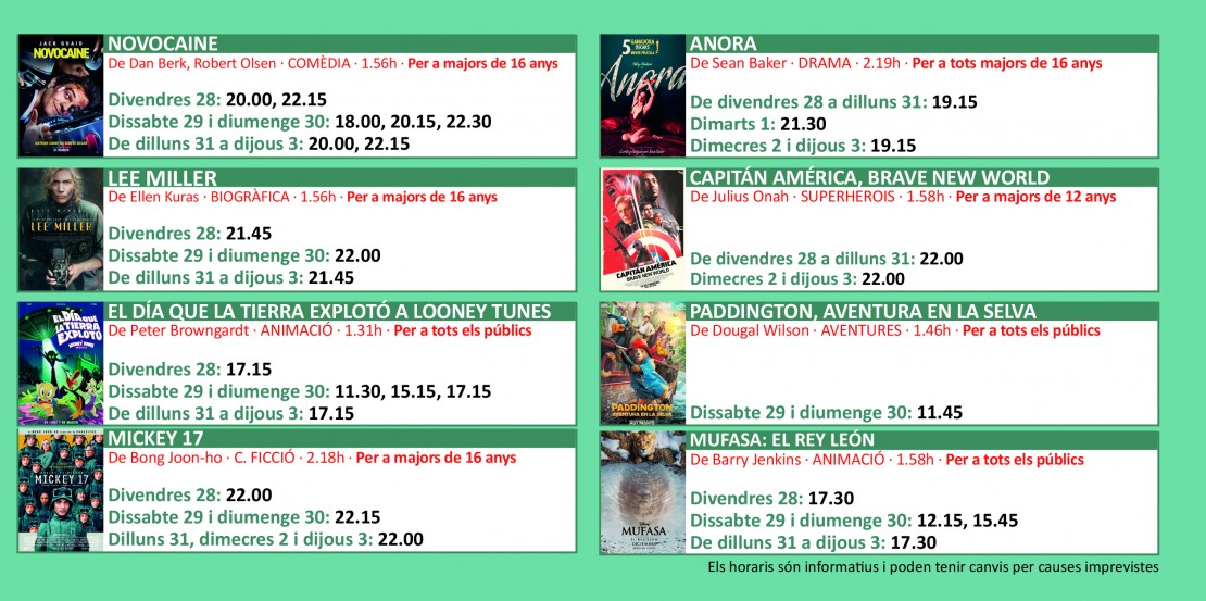 Programació dels Cinemes Illa Carlemany COMPRAR
