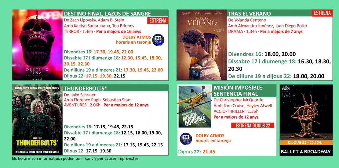Programació dels Cinemes Illa Carlemany COMPRAR