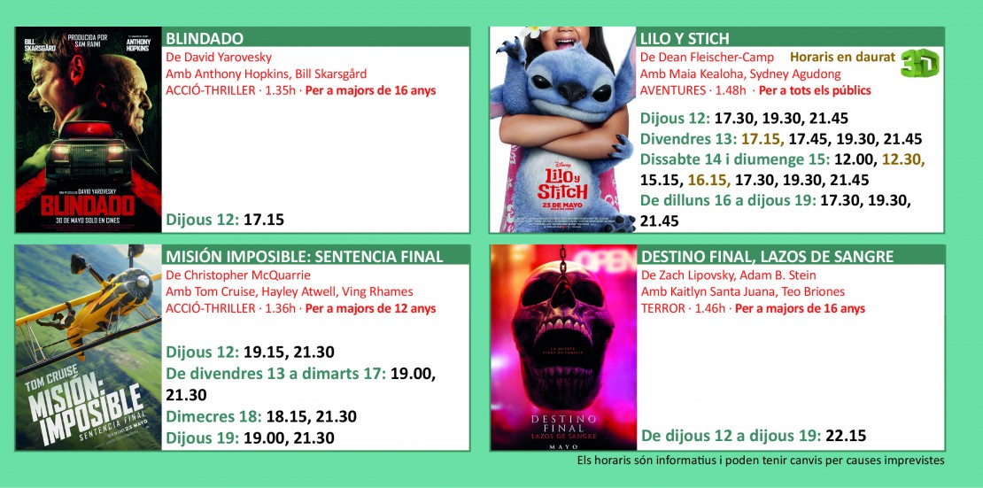 Programació dels Cinemes Illa Carlemany COMPRAR
