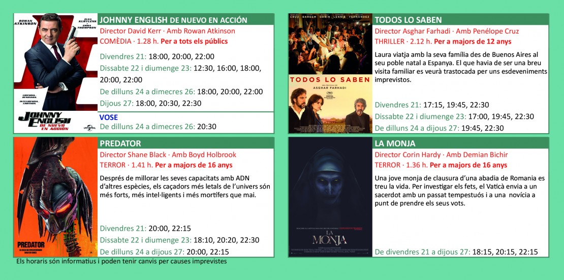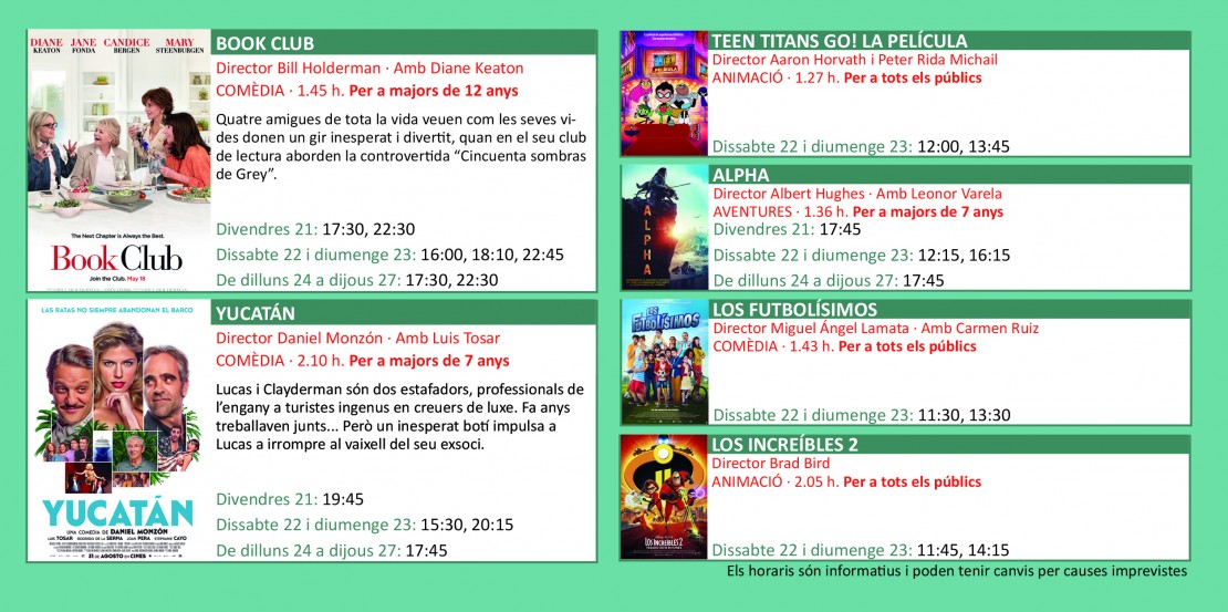 Fes un clic damunt de les imatges per ampliar-les i consultar la cartellera.
