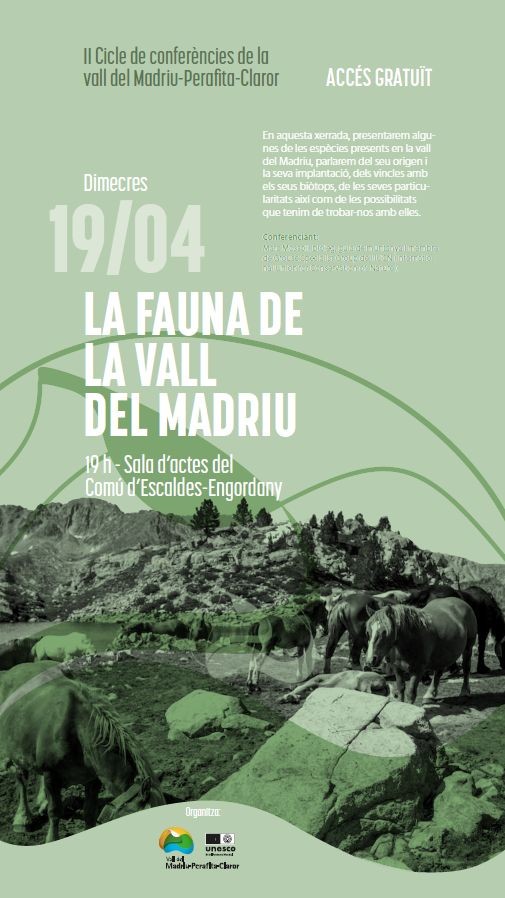 En aquesta xerrada presentarem algunes de les espècies existents a la vall del Madriu, parlarem del seu origen i la seva implantació, dels vincles amb els seus biòtops, de les seves particularitats i també de les possibilitats que tenim de trobar-nos-en.