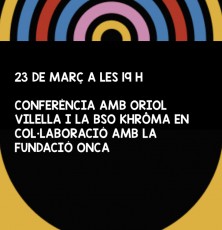 El compositor andorrà Oriol Vilella iniciarà el cicle de conferències amb la presentació de la Banda Sonora Original creada exclusivament per a l’exposició 'Khrôma'. Aquesta és una de les novetats més importants amb què compta l’actual mostra expositiva i que ha estat fruit de la col·laboració amb la Fundació ONCA.
