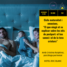 En aquesta sessió del cicle 'Maternitat i emocions', descobriràs què passa amb el teu son i el de la teva criatura durant el postpart. Una trobada per comprendre, cuidar i acompanyar des de la realitat i l’amor. Amb Cristina Ruipérez, psicòloga perinatal.