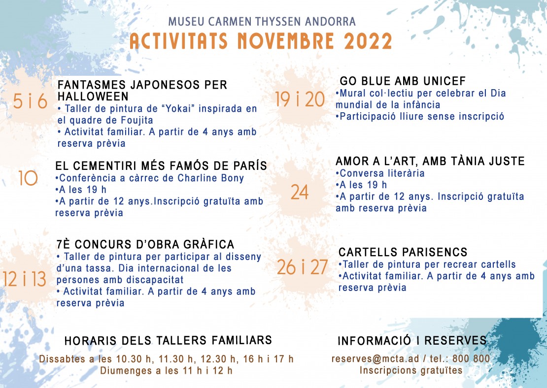 Aprofitant la proximitat de la Castanyada i la festivitat de Halloween, l'equipament celebrarà un taller de creació de fantasmes japonesos, tot descobrint la figura de Leonard Foujita. L'excèntric artista japonès es va convertir en tota una celebritat del món bohemi parisenc i inspirarà l'original taller de creació de fantasmes japonesos (Yokai).