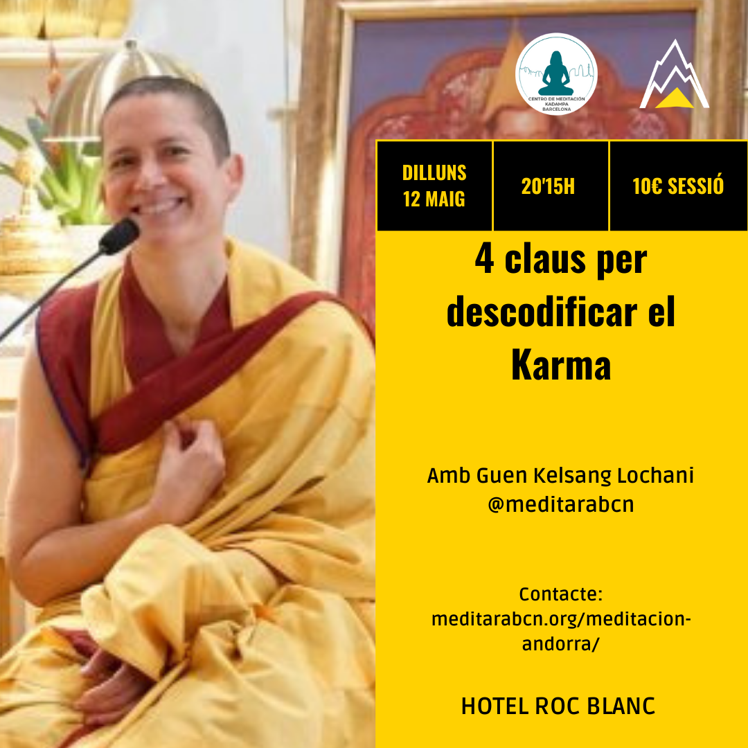 Amb Guen Kelsang Lochani (@meditarabcn). Una sessió per comprendre i transformar el karma a través de l’ensenyament budista. Contacte: meditarabcn.org/meditacion-andorra/