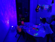Amb la llum negra això és possible. Gràcies a l'ambient de la llum negra i del material que oferim, els vostres petits s’ho passaran pipa construint amb palletes fluorescents, pintant amb colors neó i molt més!