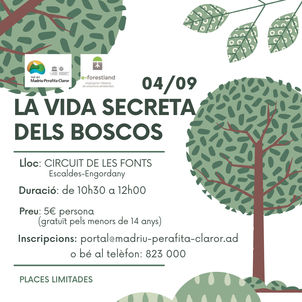 Activitat organitzada amb la col·laboració d’e-Forestland, que ens ajudarà a conèixer els boscos de la vall i la seva coevolució amb les activitats humanes tradicionals que han generat els paisatges actuals.