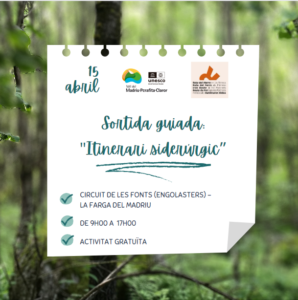Dins les activitats programades per la Ruta del Ferro dels Pirineus, associació de la qual la Vall del Madriu-Perafita-Claror és membre, hem organitzat una sortida guiada fins la Farga del Madriu el pròxim dissabte 15 d'abril.