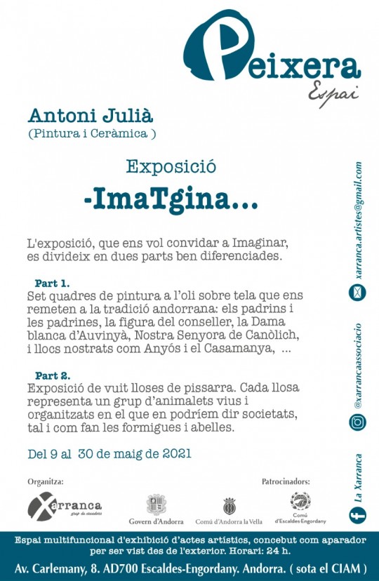 Antoni Julià és un artista andorrà i membre de La Xarranca. Per circumstàncies, és recentment que es dedica de ple a la creació d’art. Malgrat que sempre té un pinzell a les mans, durant la major part de la seva vida l’Antoni ha canalitzat els seus coneixements i la seva mirada artística en la professió de decorador projectista. Cap al final de la seva carrera professional, l’Antoni ha trobat cada vegada més temps per recuperar la seva passió per la creació artística a través de la pintura a l’oli i la ceràmica principalment. Potser us sorprendrà gratament saber que moltes de les seves pintures estan escampades per llars d’Andorra. També de París, ciutat on l’Antoni va viure i treballar una temporada. Pel que fa a la ceràmica, l’Antoni s’ha format a La Llacuna, lloc on també s’han exposat algunes de les seves creacions.