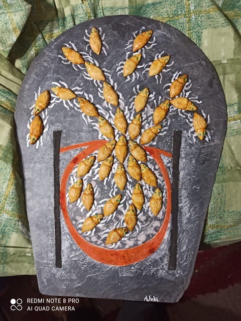 Exposició de vuit lloses de pissarra. Cada llosa representa un grup d’animalets vius i organitzats en el que en podríem dir societats, tal com fan les formigues i abelles.