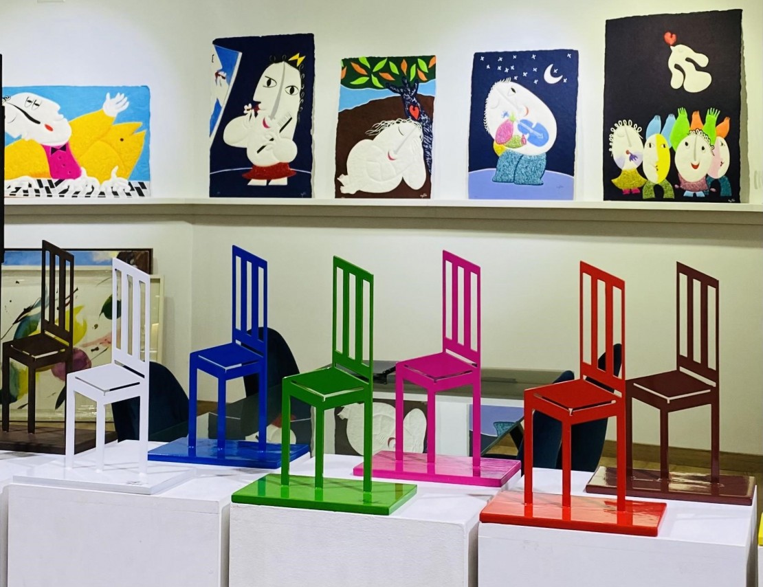 S'han seleccionat obres sobre paper, tela o fusta d’inspiració nipona de Jaume Amigó; escultures de marbre de Carrara, bronze i gravats xil·lografics d’Àngel Camino; colorits gravats sobre paper fet a mà i incrustacions de vidre de Murano de Juan Ripollès; aquarel·les de temàtica vegetal amb tonalitats tardorenques de Lola Abellán, i, per primera vegada, s'han reunit la col·lecció de les 10 versions de la “Cadira de la Pau”, símbol de la coexistència, la democràcia i la pau, de l’artista colombià Duvan!