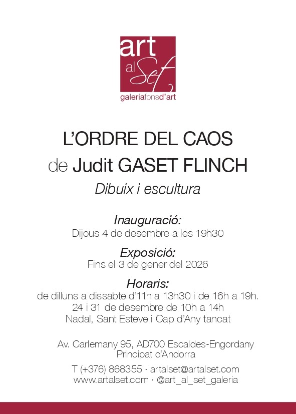 Us convidem a l'exposició 'L'ordre del caos' de Judit Gaset Flinch, una mostra que inclou obres en dibuix i escultura.