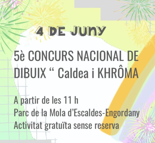 Sota el lema “ Caldea i KHRÔMA. Deixa volar la imaginació i el talent!”, des de les 11 h fins a les 13 h els infants podran apropar-se al Parc de la Mola i participar en el 5è concurs Nacional de dibuix.