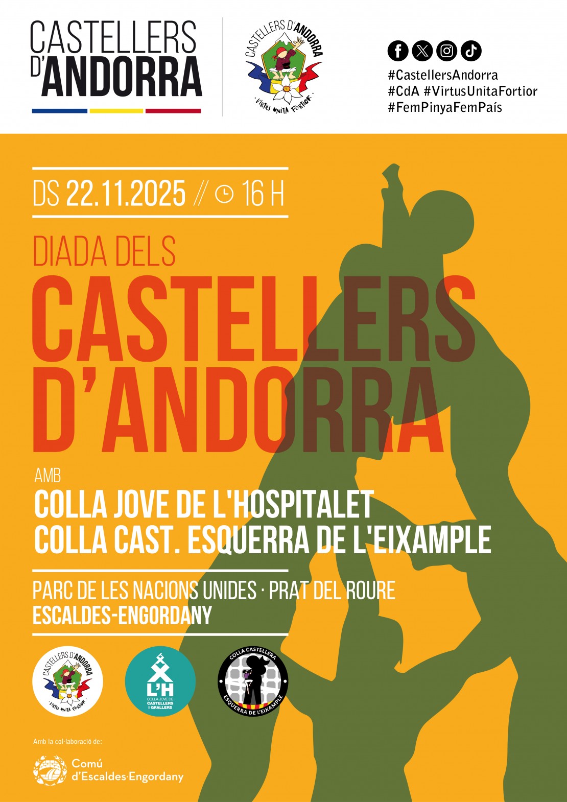 Diada dels Castellers d’Andorra amb Colla Jove de l'Hospitalet i Colla Castellera de l'Esquerra de l'Eixample.