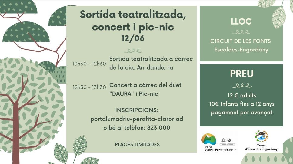 Sortida guiada a la vall del Madriu-Perafita-Claror amenitzada per la companyia Andan-da-ra, de 10.30 a 12.30 h.